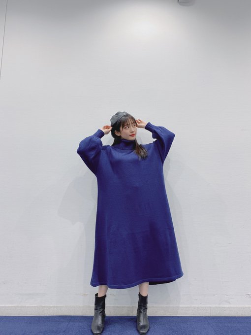ブルーのニットワンピに