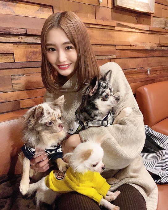 川上礼奈@renapyon_udon -- 今日はみんなでわんちゃんも入れるカフェに行って来たよ🐶✨店内もわんちゃん沢山いてみんな興奮気味でした🤣💗奇跡の3ショット撮れた〜😭✨嬉しい〜!!!!笑 pic.twitter.com/LYyT7Ag5q4