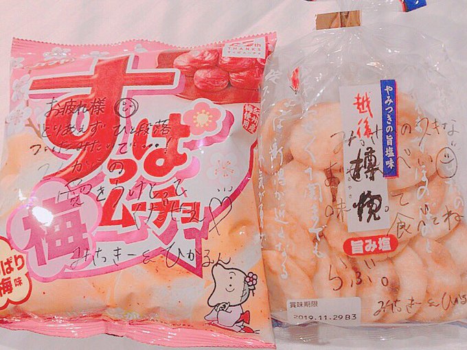 私が昨日で雫新ポジもサマステも終えて一旦一段落って言ってたのをひかが覚えてたらしくひかちゃんとみさっきーがお菓子くれました💗笑 よく食べるやつ!笑わかってるなぁ、笑