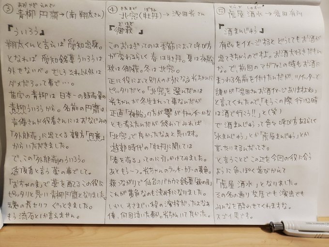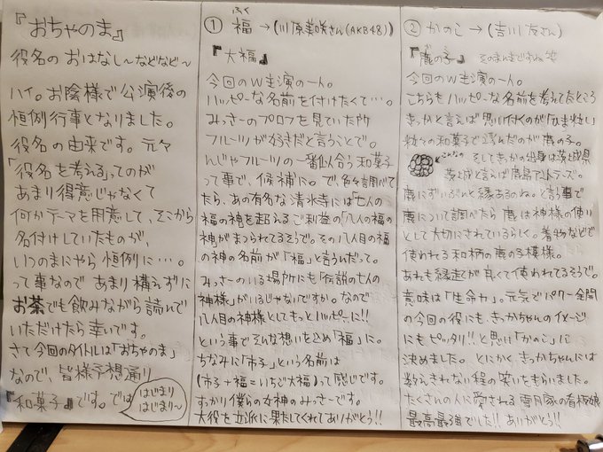 こんなに考えてくださってたのを台本をいただいた時にお話ししてくださった時に知って、なんとまぁ愛に溢れた方なんだろうかと嬉しさでニヤニヤしつつ、とても感動したのを覚えています。