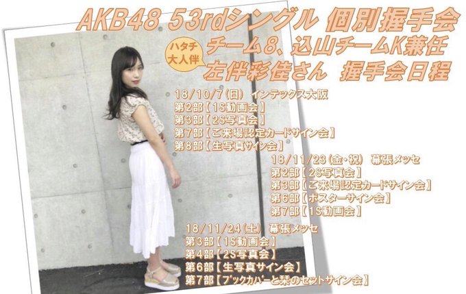 左伴彩佳@hidaaya_0729 -- 握手会の再販始まってます〜!!😊11/23祝 2部・3部がオススメです♥︎よろしくお願いします🙇🏻♀️ twitter.com/hidaaya_0729/s… 左伴彩佳 53rdシングルの握手会の再販1次受付中です☺︎(締切・8/29水曜日)11/23祝 2部・3部がオススメ❤️🙋♀️少しでも気になっている方がいたら会いに来てくれると嬉しいです☺️♥︎画像はファンの方からお借りしました🙇🏻♀️ pic.twitter.com/2OPCXaWRyC