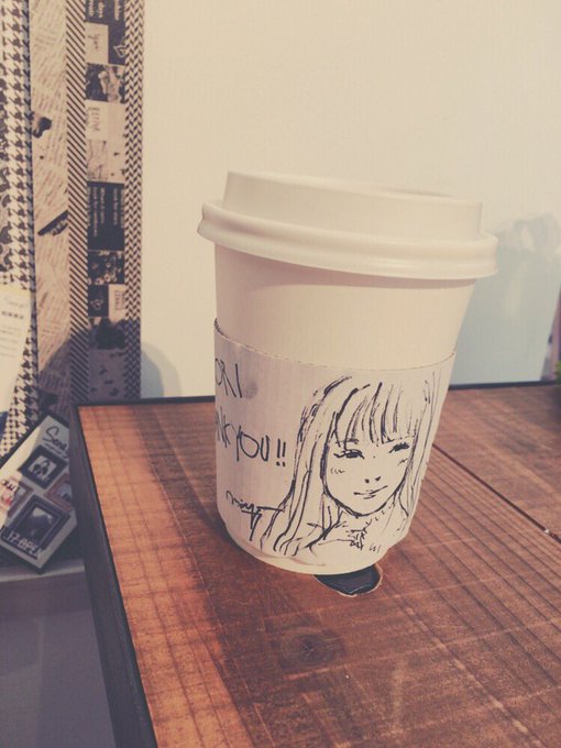 カフェラテのスリーブにその場で似顔絵描いて下さったり♪
