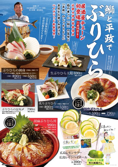 11/19(金)~チムニーグループさんで「ブリヒラ」メニューと広島レモンを使用したドリンクが販売開始となります🐟🍋