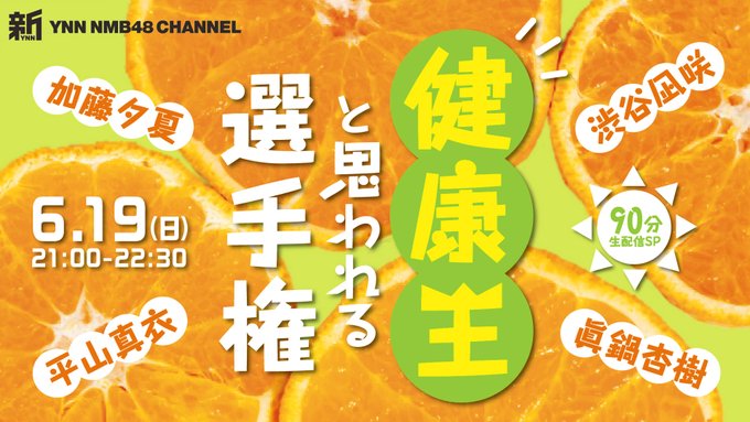 平山真衣 (NMB48)@maity_nmb -- #新YNN健康と思われてる、、、、😎😎😎 twitter.com/riichan24h/sta… 新YNN NMB48 CHANNEL 6/19(日)21:00-22:30 #新YNN「健康王と思われる選手権」90分生配信SP出演:加藤夕夏、渋谷凪咲、平山真衣、眞鍋杏樹ch.nicovideo.jp/ynn pic.twitter.com/JcQDzbWGlT