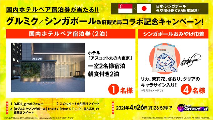 平嶋夏海@nacchan_h0528 -- グルミク以外音ゲーしてないからよくわからないけど昨今の音ゲーはホテル宿泊のプレゼントまでしてるんだね😱💗#D4DJ #グルミク #グルミクシンガポール twitter.com/d4dj_gm/status… D4DJ Groovy Mix( #グルミク )公式 /ホテル宿泊券当たる🏨✨豪華キャンペーン🎊\🎫応募方法🌴1⃣@D4DJ_gmをフォロー2⃣このツイートを引用RT3⃣【#グルミクシンガポール】を付けてイベント「Non S.T.O.P.! 最&高!!」の感想を投稿📝詳細はこちら👇d4dj.bushimo.jp/news/post-107#グルミク👇bit.ly/33Tg1jU#D4DJ pic.twitter.com/XvxDBtJeVi