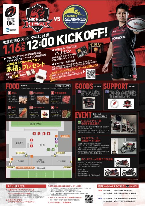 明日は【ラグビーチーム・三重ホンダヒート】さんの開幕戦を見に 三重交通グループ スポーツの杜鈴鹿 にバイクで遊びに行きます🏍