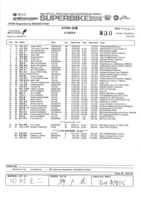 ST600の決勝でのムクラダ選手は予選より大幅に順位アップして14番手に!