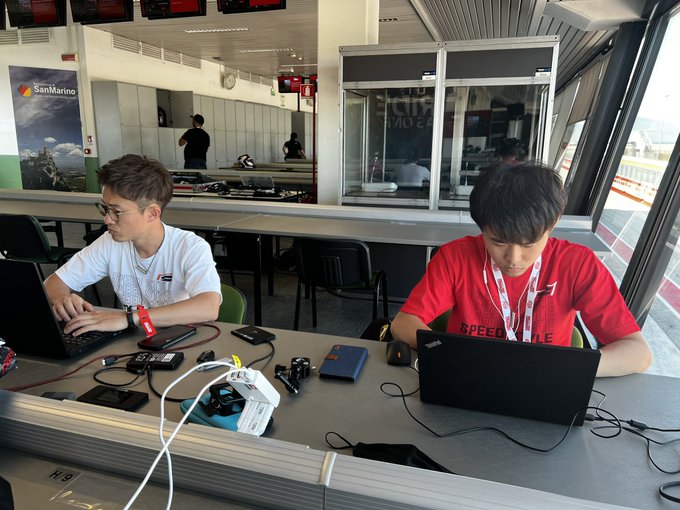 ミサノサーキットのヘアピンから見てます!