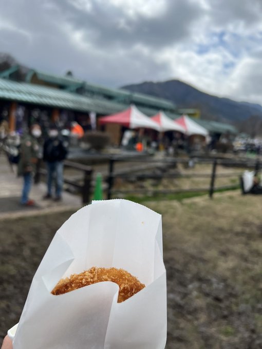 揚げたてコロッケ食べて、ぷらぷらしてたら、温かい飲み物に焼き芋までいただいてしまいました🍠☕️🙏💕