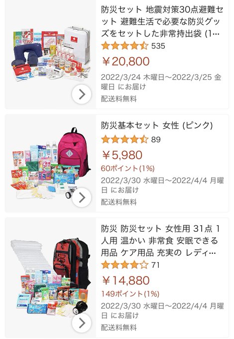 Amazonさんなどで女の子用の緊急時リュックなど販売されています。