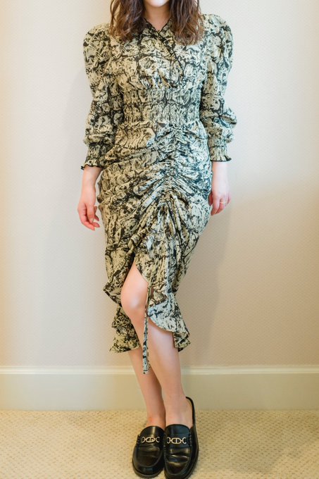 スカートは長さ調整がおしゃれにできる仕様でカシュクールが大人可愛い❤︎