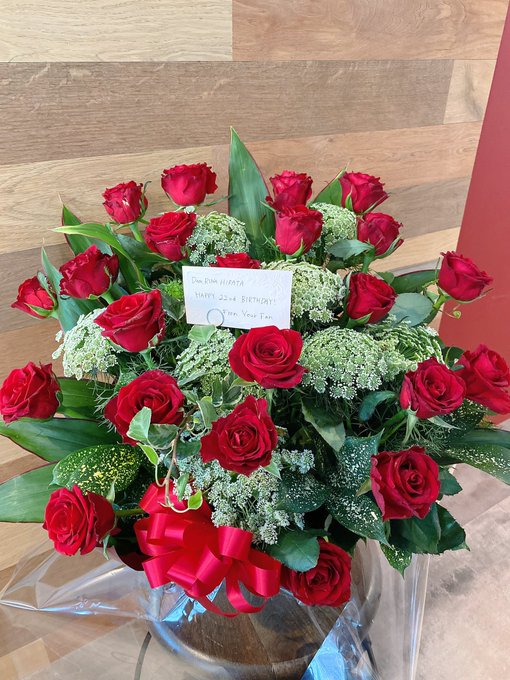 事務所行ったら素敵なお花やプレゼントが届いてました🌹ありがとう^_^お手紙、プレゼントの送り先は