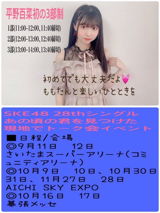平野百菜@morimori180905 -- トーク会で着る服の予定です💗ぜひももたんに会いに来てください☺️写真は、またまたファンの方が作ってくれました😆ありがとうございます❤️❤️ pic.twitter.com/TtFWI6EseF