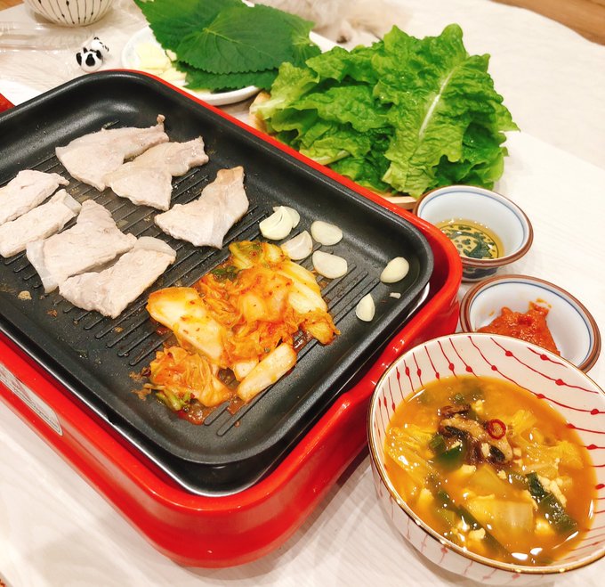 惣田紗莉渚@sodasarinachan -- おうちでサムギョプサルとマッコリ☺︎前にJINROのマッコリのwebに載せてもらってたなあ☺️またやりたい! pic.twitter.com/yrft7w1msF