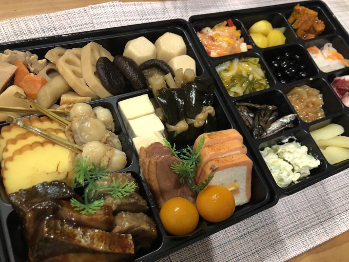 惣田紗莉渚@sodasarinachan -- あけおめです〜🐭愛知県大府市のおせち✨綺麗☺️💓いただきます🙏SHOWROOM、15時ごろからやろうと思います☺︎ pic.twitter.com/JiR4o49bWD