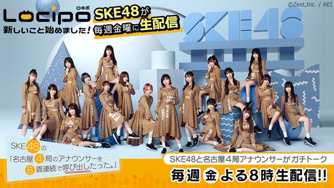 このあと20時からSKE48の「名古屋4局のアナウンサーを8週連続で呼び出したった。」動画情報配信サービスLocipoにて生配信です!アプリをダウンロードして是非観てください!