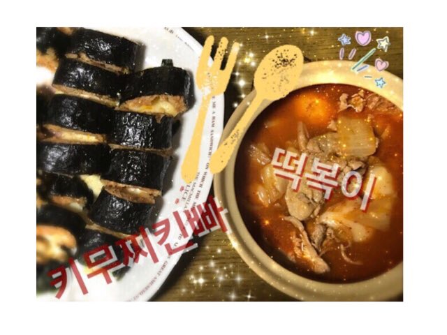 明石奈津子(NMB48)@nattu817 -- 今日の夜ご飯は自分でcooking🍴 韓国料理を作って見ました🇰🇷☺️#とろーりチーズのキムチキンパ#トッポギ (豚バラ) pic.twitter.com/DQWGCXIvPO