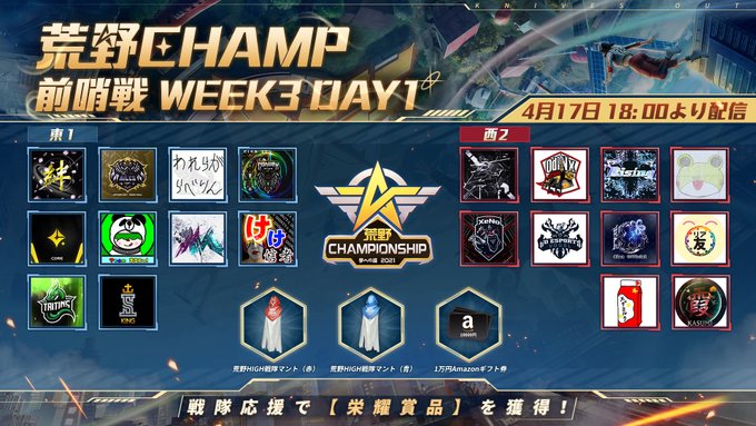 明石奈津子@nattu817 -- みてねー❤️18時から生放送 twitter.com/knivesoutchamp… 荒野行動 eスポーツ 事務所 【#荒野CHAMP 前哨戦WEEK3 DAY1 戦隊応援】①本ツイートをコメントつけてRT②コメントに推しチームのタグ+応援の一言抽選で💰5名様に1万円分アマギフ!👕WEEK1地域1位チームの応援者10名様に限定赤マント(西)、青マント(東)贈呈!📺WEEK3 DAY1配信youtu.be/_FaOelx80t4#荒野行動 pic.twitter.com/3YBdidhB01