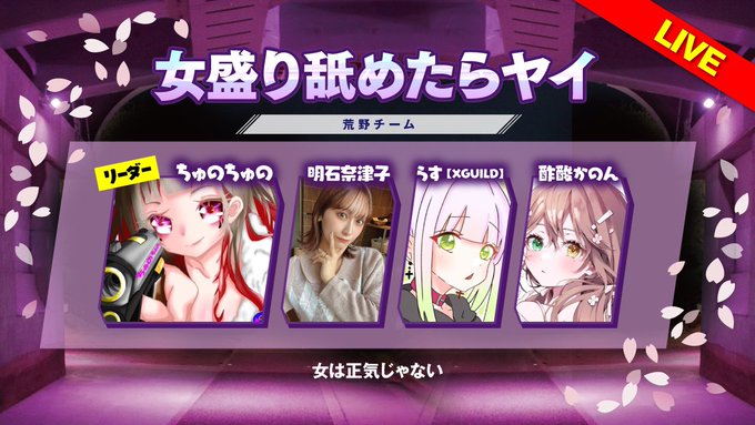 明石奈津子@nattu817 -- ↓ハッシュタグつけてぜひツイートしてね#荒野フェス桜の陣#女盛舐めたらヤイ twitter.com/chunonnon/stat… ちゅのちゅの💋❀ 本日13:00から 🌸荒野フェス-桜の陣🌸明石奈津子さんらすさん、酢酸かのんさんちゅのちゅのが参加します!#荒野フェス桜の陣 +#女盛舐めたらヤイ を付けてツイートしてください!みなさんの応援が力になります🫶大会ライブ配信先: youtube.com/live/o18D2ZZzr…#荒野行動 pic.twitter.com/Lbodjagt3U