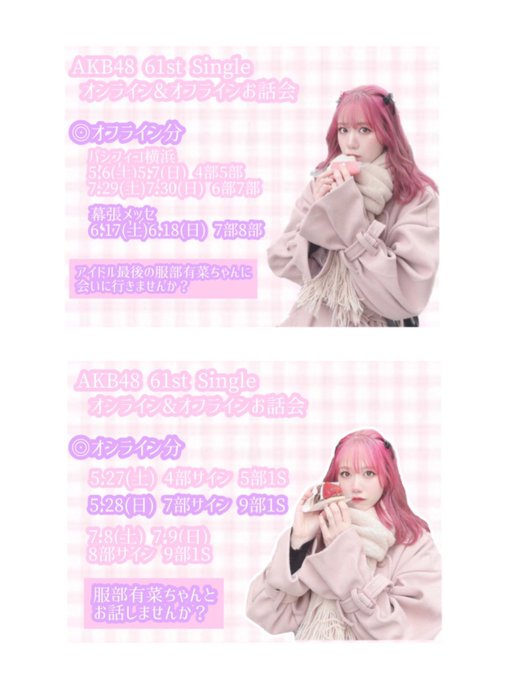 服部 有菜@__03yuna30 -- AKB48 61th シングル個別お話会・オンラインお話会是非来てください(,,> <,,)♡official-cd.akb48.co.jp/61st/ pic.twitter.com/Empkw6Z9ON