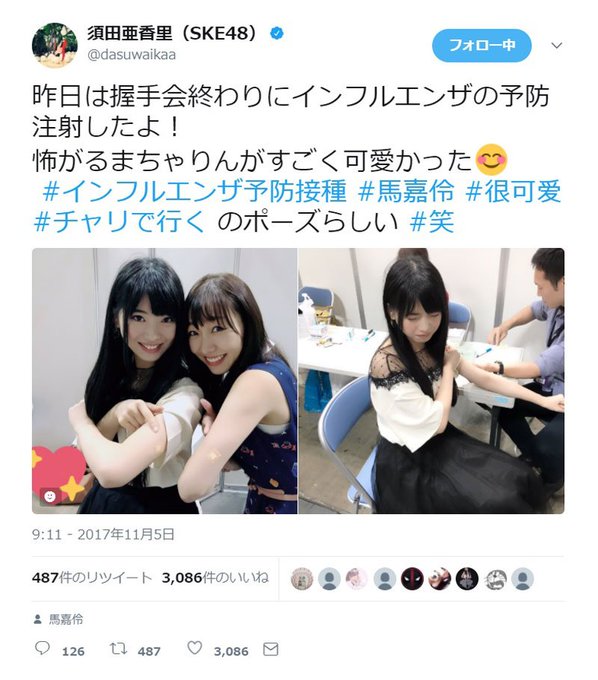 #AKB48 #握手会 #注射 #インフルエンザ pic.twitter.com/TGvETsUfhV