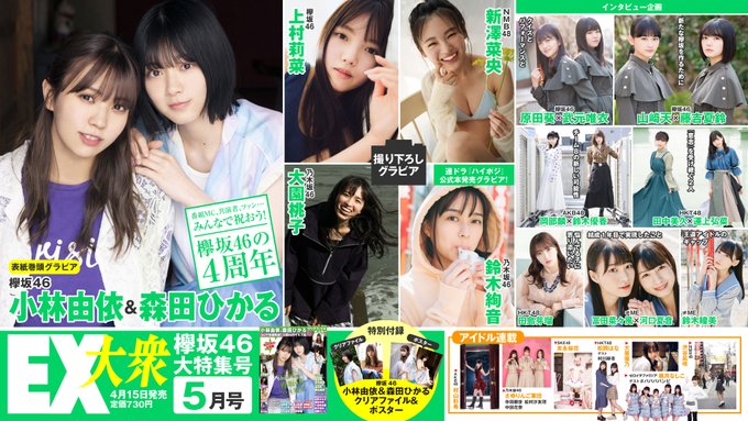 末永桜花@Ouka_ske0226 -- おやおや…?これは…??🤔🧐🥳今回もお楽しみにっ🌟是非ゲットしてね🥳🥳🥳 twitter.com/extaishu/statu… EX大衆 来週15日(水)はEX大衆5月号の発売日です。今月の表紙巻頭グラビアは欅坂46の小林由依さんと森田ひかるさん。クリアファイル&ポスター付きです。上村莉菜さんグラビア、原田葵さん武元唯衣さん対談、山﨑天さん藤吉夏鈴さん対談、ファンの皆さんも含めた欅坂4周年おめでとうコメント企画も! pic.twitter.com/zUzsMOUc74