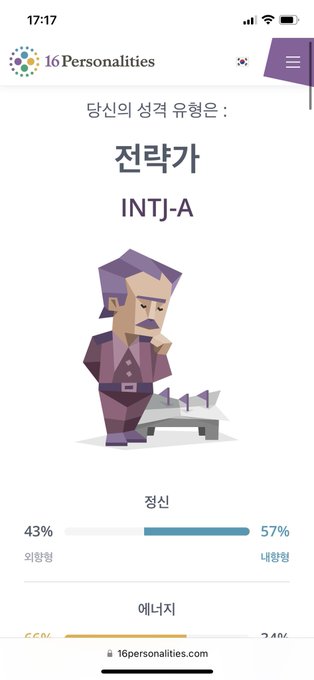 질문 바뀐 MBTI 역시나 INTJ가 나오네요 ㅎㅎ... 원래는 ENTJ였는데ㅋㅋㅋ