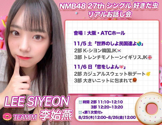 李 始燕 (イ シヨン)【NMB48】🍩@siyo_min 今回のお話会は