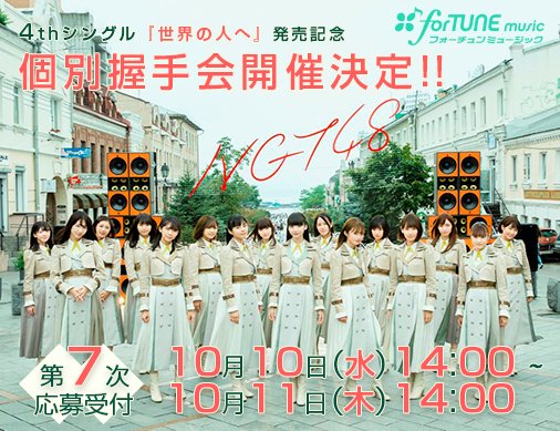 村雲颯香@mofu_idoll_ -- よろしくお願いします❤︎❤︎ twitter.com/fortunemusicjp… forTUNE music 【#NGT48】/4thシングル『世界の人へ』発売記念個別握手会 第7次受付スタート✨\10月28日愛知会場の最終受付となります!受付は明日14時まで!ご応募お忘れなく🙆♂️#NGT48個握fortunemusic.jp/ngt48_a_201809/ pic.twitter.com/hFXbBN5eTV