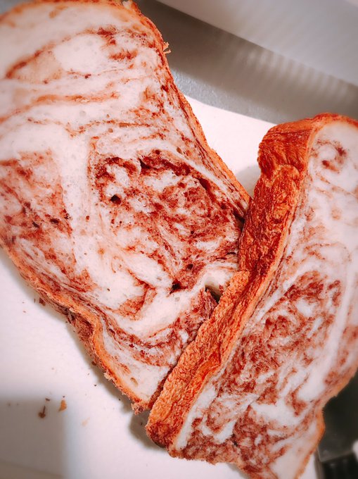 東李苑@rion_az13 -- ホームベーカリーって材料ぶっこむだけでこんなの出来ちゃうからすごい。あっおそようございます!マーブルパン美味しいです…☺️ pic.twitter.com/gmicomzVjA