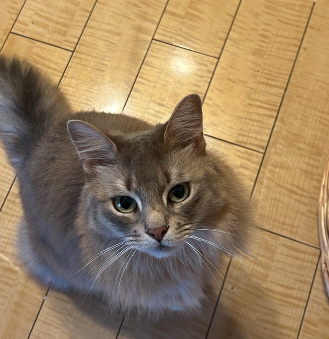 台詞は覚えた。うん。小説に手をつけます。ぎゃん。甘えたそうにこちらを見ている。 pic.twitter.com/WcY5aPWUx8