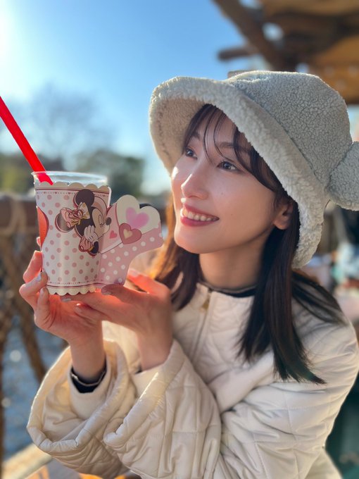 松井玲奈@renampme -- 唐突に写真投下。ディズニーランドのウッドチャックキッチンで飲める、冷たいスペシャルドリンク、フルーティーで美味しかったよ!ミニーちゃんのスリーブ💕 pic.twitter.com/beA7e5nLs3