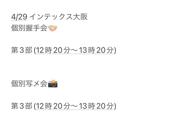 松岡さくら(NMB48)@sakura__nmb48 -- お支払い方法選択期限が、本日23時59分までです!落選報告も聞きました!嬉しい😭忘れてしまうと当選が無効になってしまうのでよろしくお願いします!! twitter.com/sakura__nmb48/… 松岡さくら(NMB48) 握手会、写メ会、オンラインお話し会の受付が始まってます!!握手会、写メ会はありがたいことに部数追加していただけました😭公演とかとは違う私が見れると思います!!🌟待ってます〜🫶🏻🔗 store.universal-music.co.jp/event-list/nmb… pic.twitter.com/0hX2us5GLU
