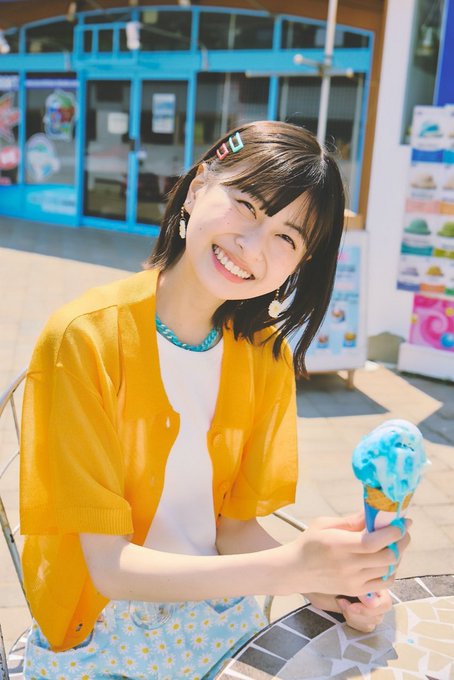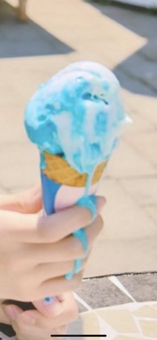 すんごい笑ってるけどアイスめちゃくちゃ溶けてる〜😹💞(笑)