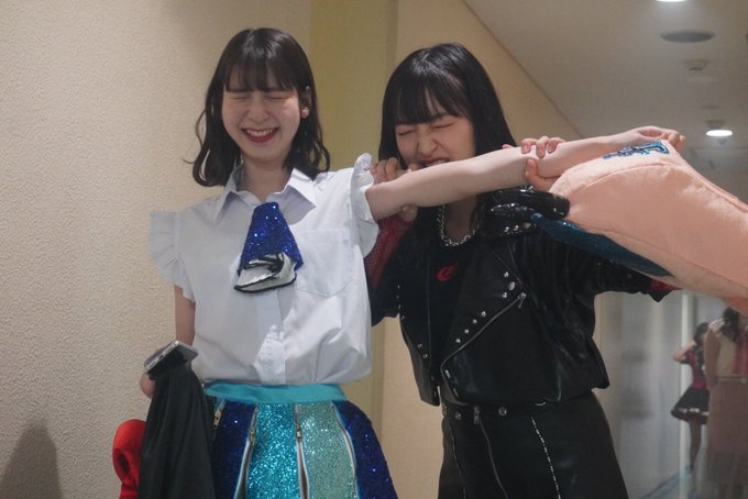 フィッティングした時に私がどうしても青い方のさくらの衣装が似合わなくてあおいと交換してるんです。はるっぴの衣装来着てる。今更裏話。笑 pic.twitter.com/7evhFhDF7X