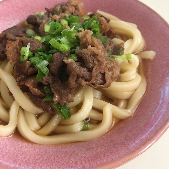 お昼はめんつゆで肉うどん。