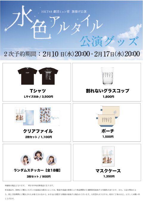 松岡菜摘@natsumi_m8 -- グッズ!ぜひゲットしてください☺️ twitter.com/gekihaji_myun/… 『水色アルタイル』公式 /HKT48 #劇はじ 限定モバガチャ&グッズ再販スタート✨🎉\今回新たにモバガチャが登場👀💞詳しくはこちら🔻mobagacha.com/hkt48そして #水色アルタイル グッズも再販スタート🥳ここでしか手に入らない限定グッズ!!皆さんも是非🌟ec.hkt48.jp/products/list?…#ミュン密 pic.twitter.com/Jg3ZcUpAqf