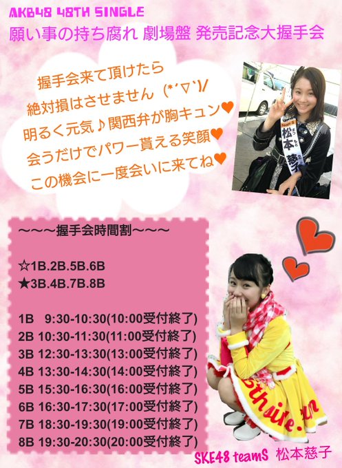 松本慈子@chikako_1119 -- 劇場公演や全国ツアー少しでもちかのこと気になった方!ぜひ、待ってますよ🤗🤗🤗 twitter.com/chikako_ske48/… ちかこちゃん大好き!I'm fine AKB48 48th single願いごとの持ち腐れ劇場盤大握手会参加券付CD第5次受付中♪akb48.chara-ani.com↑ここから申し込み出来ます✨良かったら是非遊びに来て下さい✨#AKB48選抜総選挙 #SKE48 #松本慈子 pic.twitter.com/PL32UsbHsH