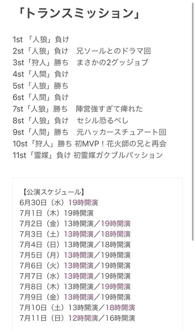 今回の私の勝敗と引いた役職です!