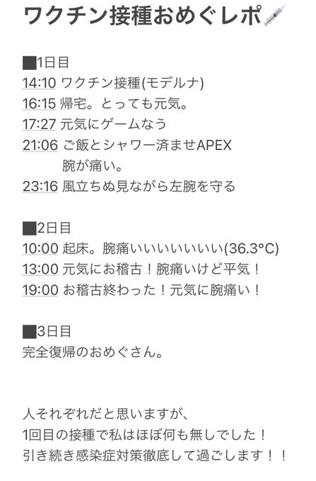 先日、1回目のワクチン接種したので