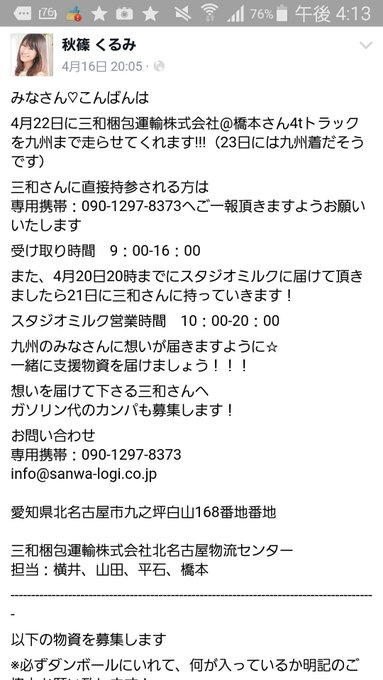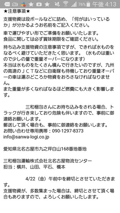 名古屋から物資を送ることが出来ないかと調べていました。名古屋の方よろしければ宜しくお願いいたします。スタジオミルクさんは名古屋市 中区錦3丁目7−12 錦クリスタル5F にあります。電話でまだ物資の受付をしていると確認しました。 pic.twitter.com/Op7uKrCaXL