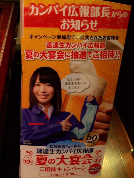松村香織SKE48@kaotan_0117 -- あしたからキャンペーンはじまりますよー2枚目のやつと名刺の写真うつりが☠写真チェックすればよかった涙#速達生 pic.twitter.com/GoWWfF6ppE