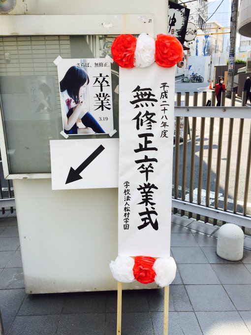 松村香織@kaotan_0117 -- 昨日はありがとうございました。お祝いのお品まで、ありがとうございました❤ケツバットのおかげで、良いレコーディングが出来ましたよね?(笑) twitter.com/jicho_YSIG/sta… シライシコウジ 卒業式に来賓として参列。ピースフルかつクレイジーな会場のバイブスに時空が完全に歪んでいましたがとても素晴らしい式典でした。無修正科の皆さま、卒業おめでとうございます。#さらば無修正 pic.twitter.com/voPugcq7S7