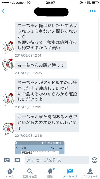 松村香織@kaotan_0117 -- TwitterのDMを開放してるんだけど、出会い系で知り合ったアイドルの子だと勘違いされている(笑)わたし、ちーちゃんじゃないの🙄ごめんね😇 pic.twitter.com/v7rspqq1BF