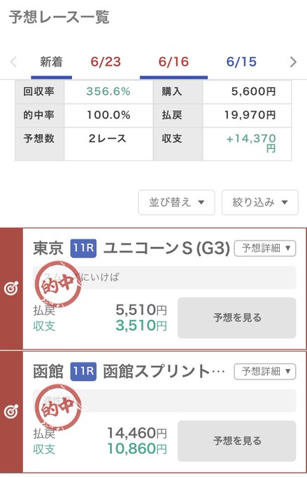 松村香織@kaotan_0117 両レース共に的中😭✨レースが終わったら予想部分なども無料で閲覧出来るので買い目なども見てみてね🐴