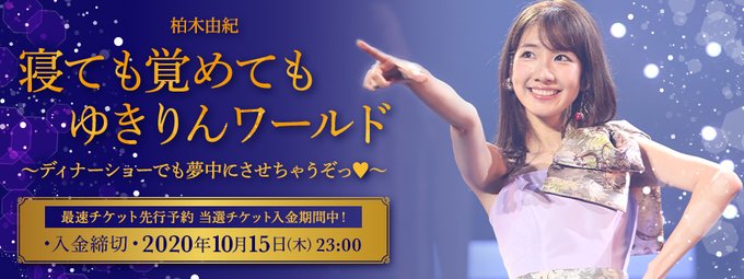 柏木由紀@Yukiriiiin__K -- みなさまお忘れなく〜☺️🙏🏻 twitter.com/wepremium/stat… We!プレ ★本日10/15(木)23:00まで【#柏木由紀】12/27(日)開催「寝ても覚めてもゆきりんワールド ~ディナーショーでも夢中にさせちゃうぞっ♡~」。We!プレ最速チケット先行予約抽選結果発表&入金期間が本日の23:00まで!2020年の最後に素敵な思い出を皆さまで作りましょう!wepremium.jp/t/1495/ pic.twitter.com/lvBbUFC5kX