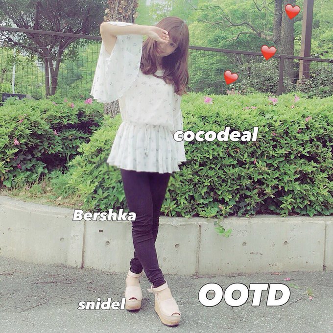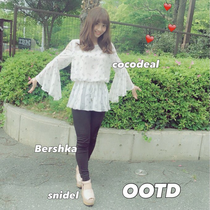 柴田阿弥@_shibata_aya -- 今日はちょっと珍しい感じ💞このトップス肩が空いててちょっとセクシー😉💘#ootd #COCODEAL #Bershka #snidel pic.twitter.com/dlfJRQNU2n