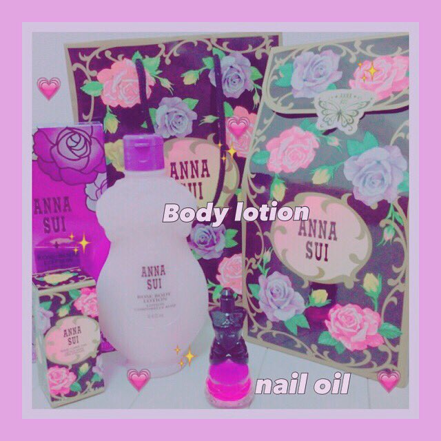 柴田阿弥@_shibata_aya -- 友達からの誕生日プレゼント💞ボディー用化粧水いい香りだし保湿力も高くて最高です💞😂ネイルオイルは今度ネイルする時に使うんだ〜(。・v・。)💋💅#ANNASUI pic.twitter.com/CeWSsdYcKF