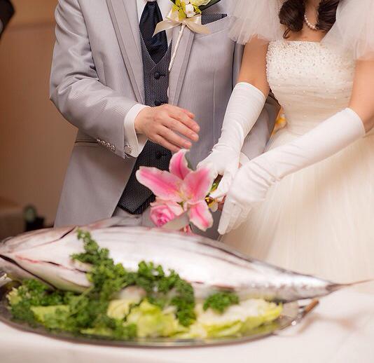 高知の結婚式で行われるらしいカツオ入刀。テレビやりよったけど、調べたら画像もあった✨