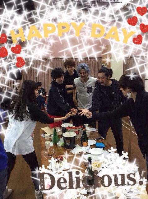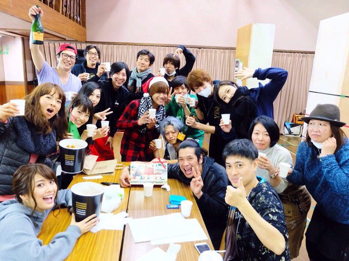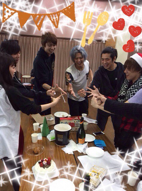 稽古終わりにみんなでクリスマスパーティー❤️銀岩塩さんが用意してくれたケーキとシャンパン、りえ姉のチキン、睦ちゃんのクッキー😍幸せ〜💓とっても温かくて楽しいチーム✨